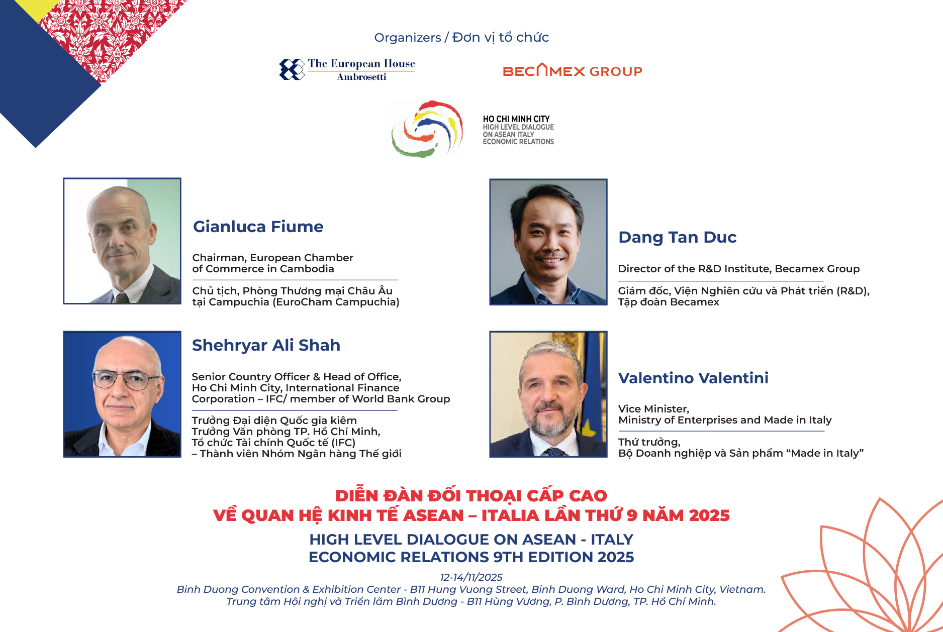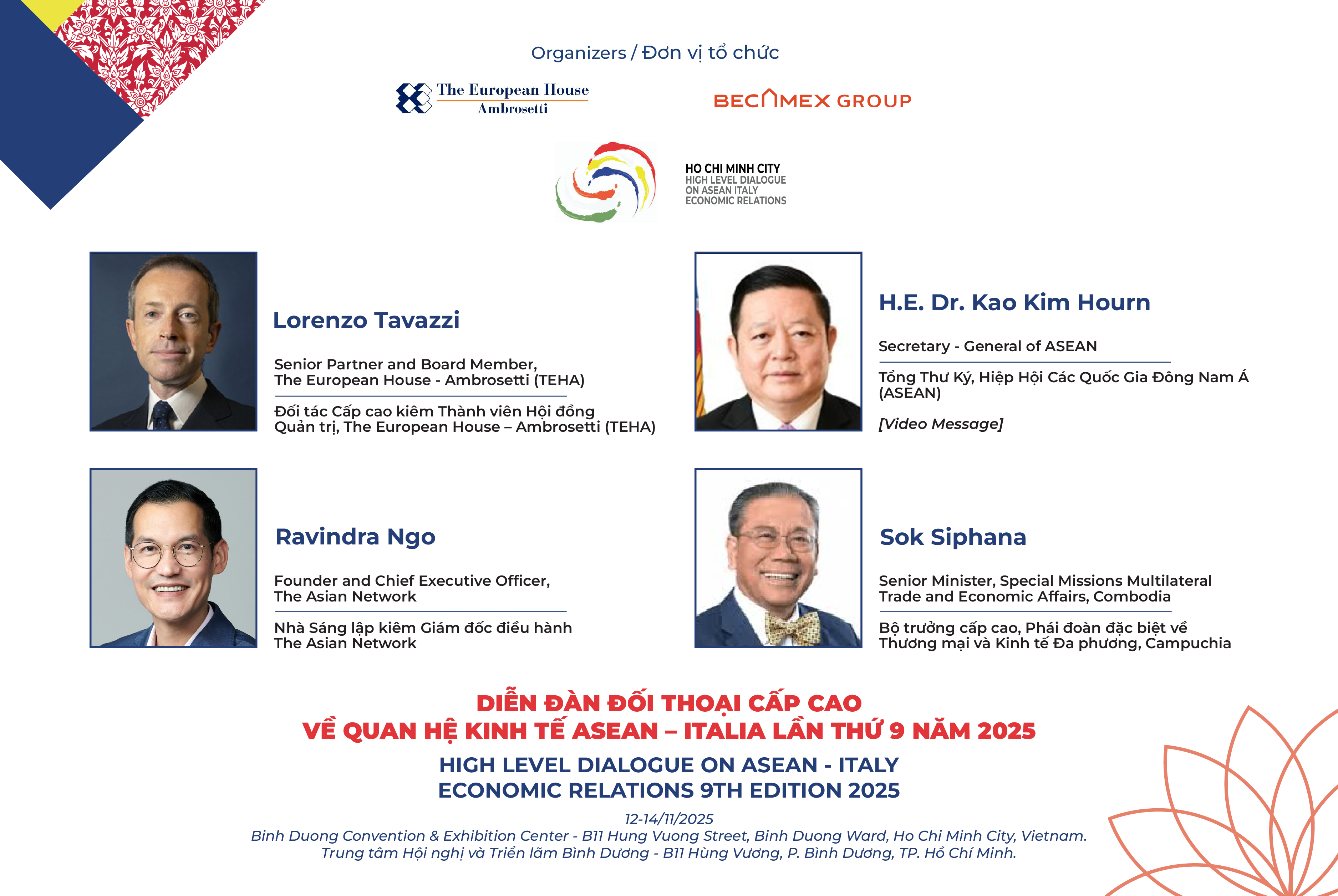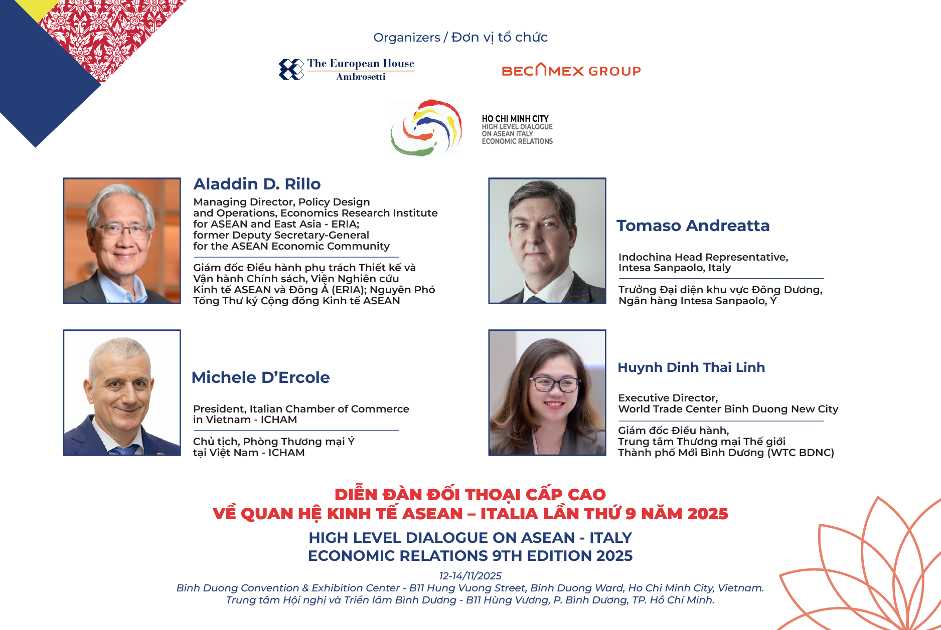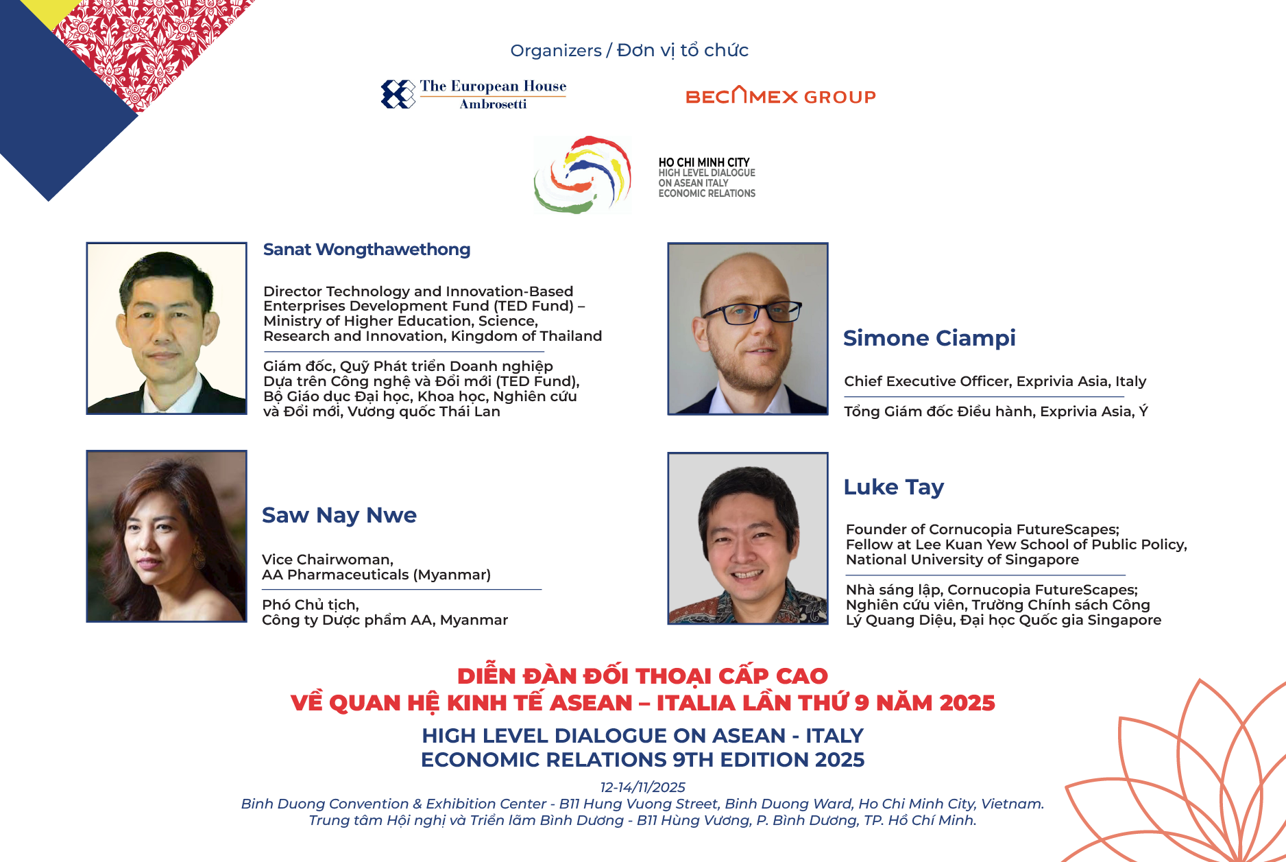 WTC Binh Duong New City is honored to present 32 distinguished speakers – including leading policymakers, experts, and scholars from across ASEAN and Italy who will take part in this year’s Dialogue.
