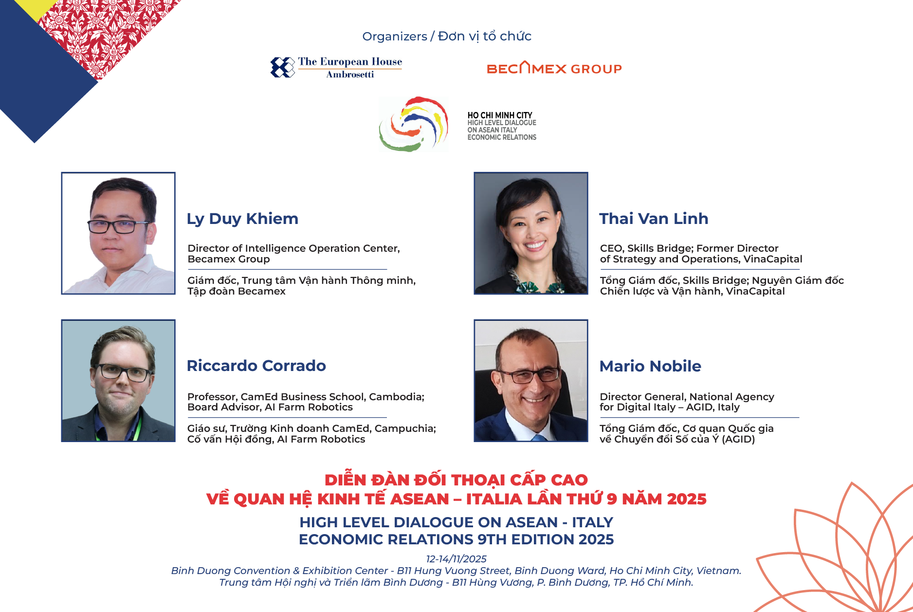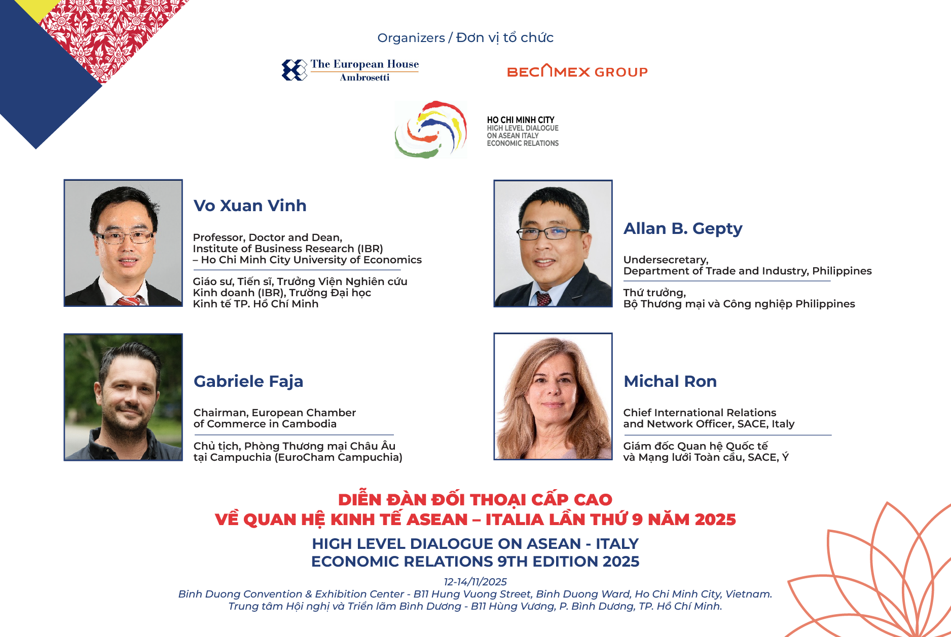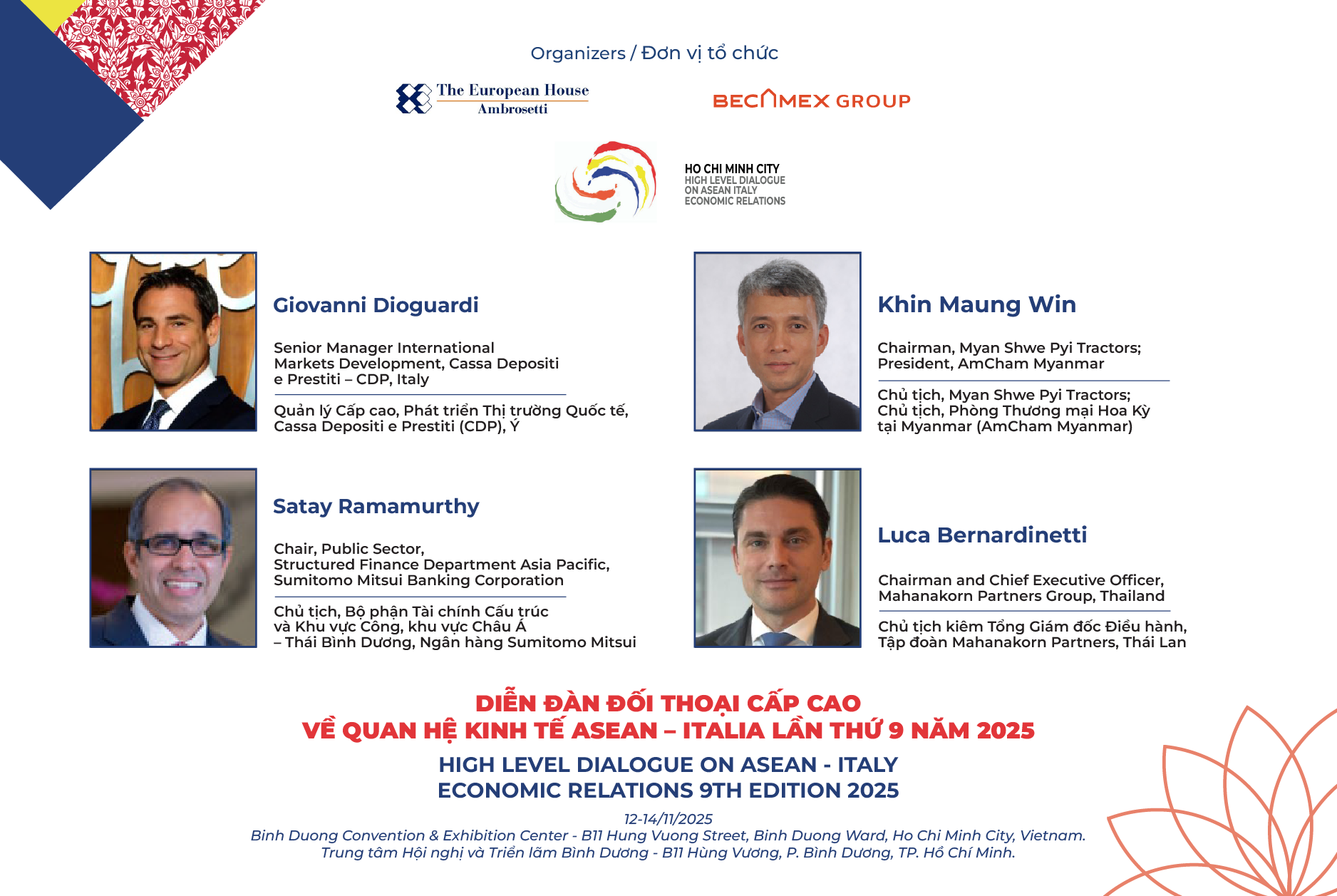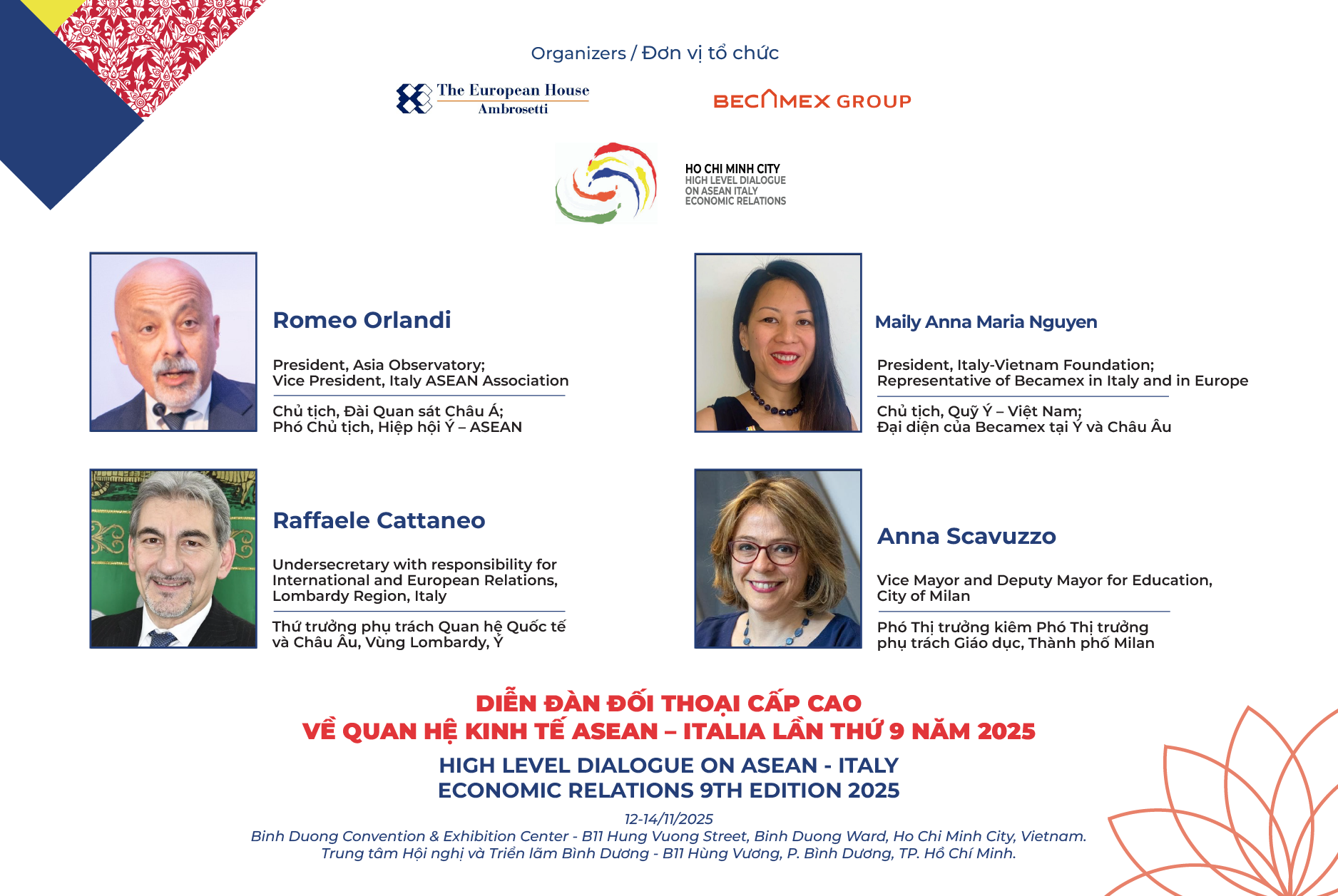 WTC Binh Duong New City is honored to present 32 distinguished speakers – including leading policymakers, experts, and scholars from across ASEAN and Italy who will take part in this year’s Dialogue.