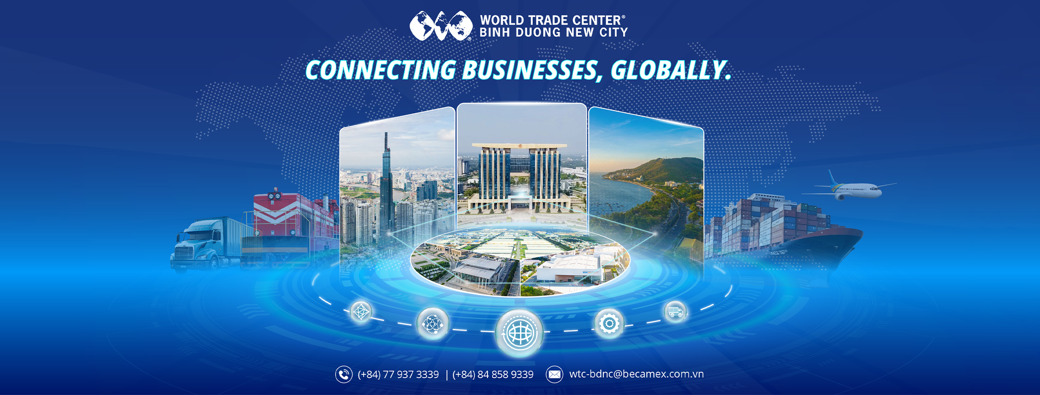 Trung tâm Thương mại Thế giới Thành Phố mới Bình Dương (WTC Binh Duong New City) là thành viên của Hiệp hội Trung tâm Thương mại Thế giới (WTCA) có trụ sở tại New York. Trung tâm Thương mại Thế giới Thành Phố mới Bình Dương giữ vai trò là trung tâm trọng yếu về ngành xúc tiến thương mại, MICE (Hội họp, Khen thưởng, Hội nghị và Triển lãm) và thu hút đầu tư quốc tế tại Việt Nam. Chúng tôi được xây dựng với định hướng chiến lược nhằm thúc đẩy kết nối thương mại toàn cầu của Việt Nam, cung cấp một hệ sinh thái toàn diện cho các doanh nghiệp mong muốn phát triển tại khu vực Đông Nam Á.