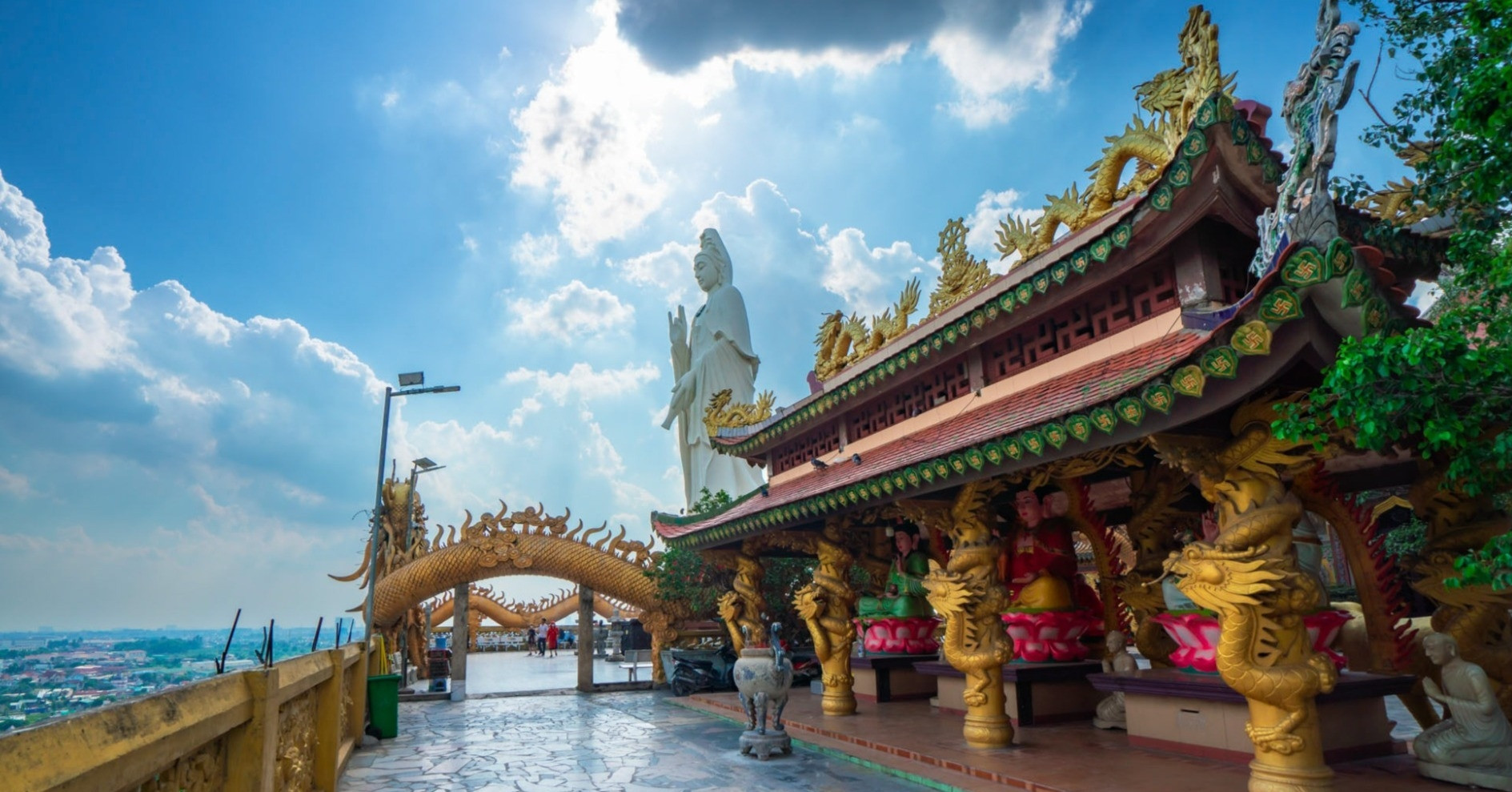 Chùa Châu Thới tọa lạc trên núi Châu Thới, thuộc phường Đông Hòa, TP. Hồ Chí Minh. Chùa nằm ở độ cao khoảng 82m so với mực nước biển, xung quanh là vùng đồng bằng rộng lớn và nhiều hồ nước nhân tạo đẹp mắt. Đây được xem là một điểm đến cảnh quan – tâm linh nổi bật giữa không gian thoáng đãng của đồng bằng. Vào ngày rằm, mùng một âm lịch và các dịp lễ lớn, nơi đây luôn thu hút đông đảo du khách đến tham quan và lễ Phật.