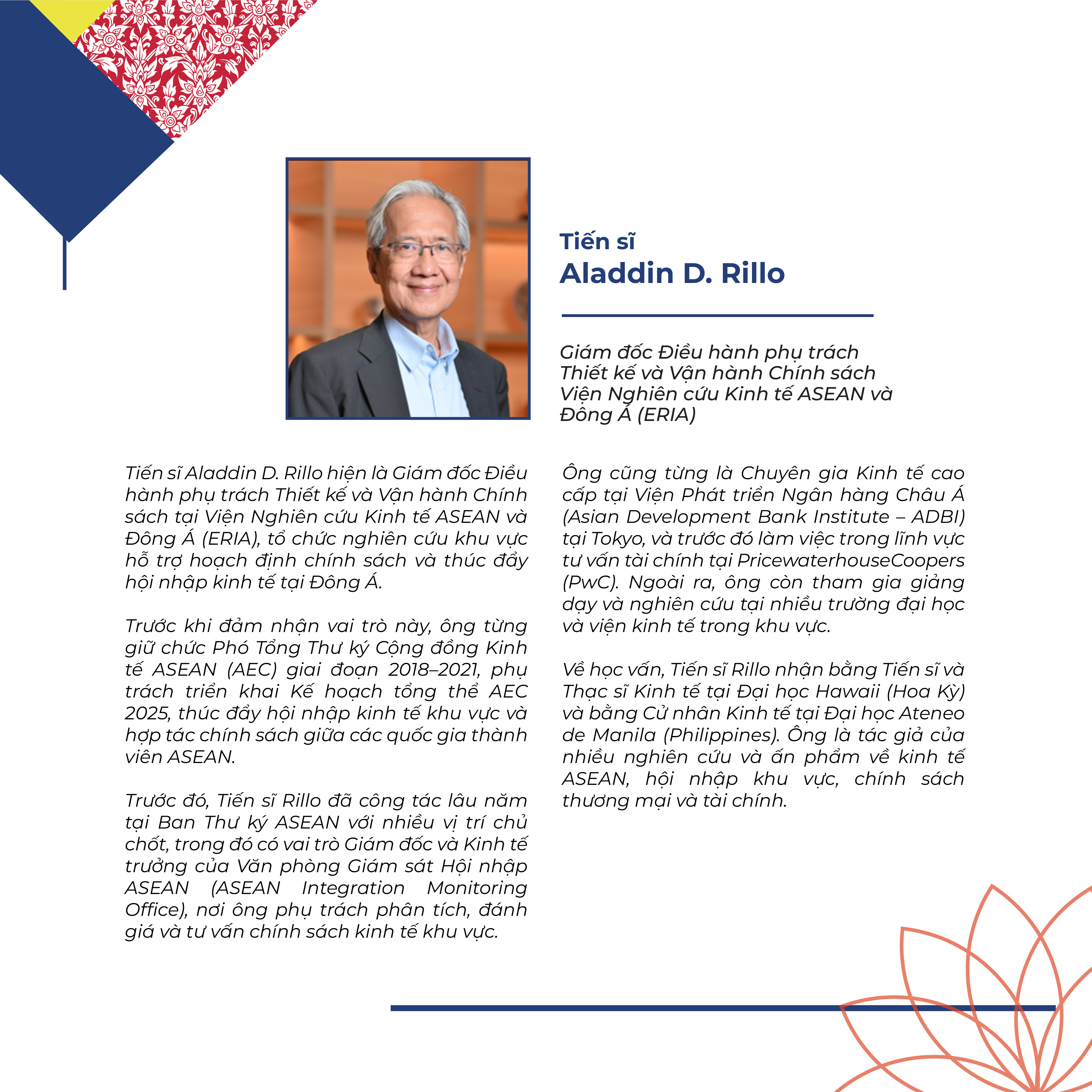 - Tiến sĩ Aladdin D. Rillo – Giám đốc Điều hành phụ trách Thiết kế và Vận hành Chính sách, Viện Nghiên cứu Kinh tế ASEAN và Đông Á (ERIA).