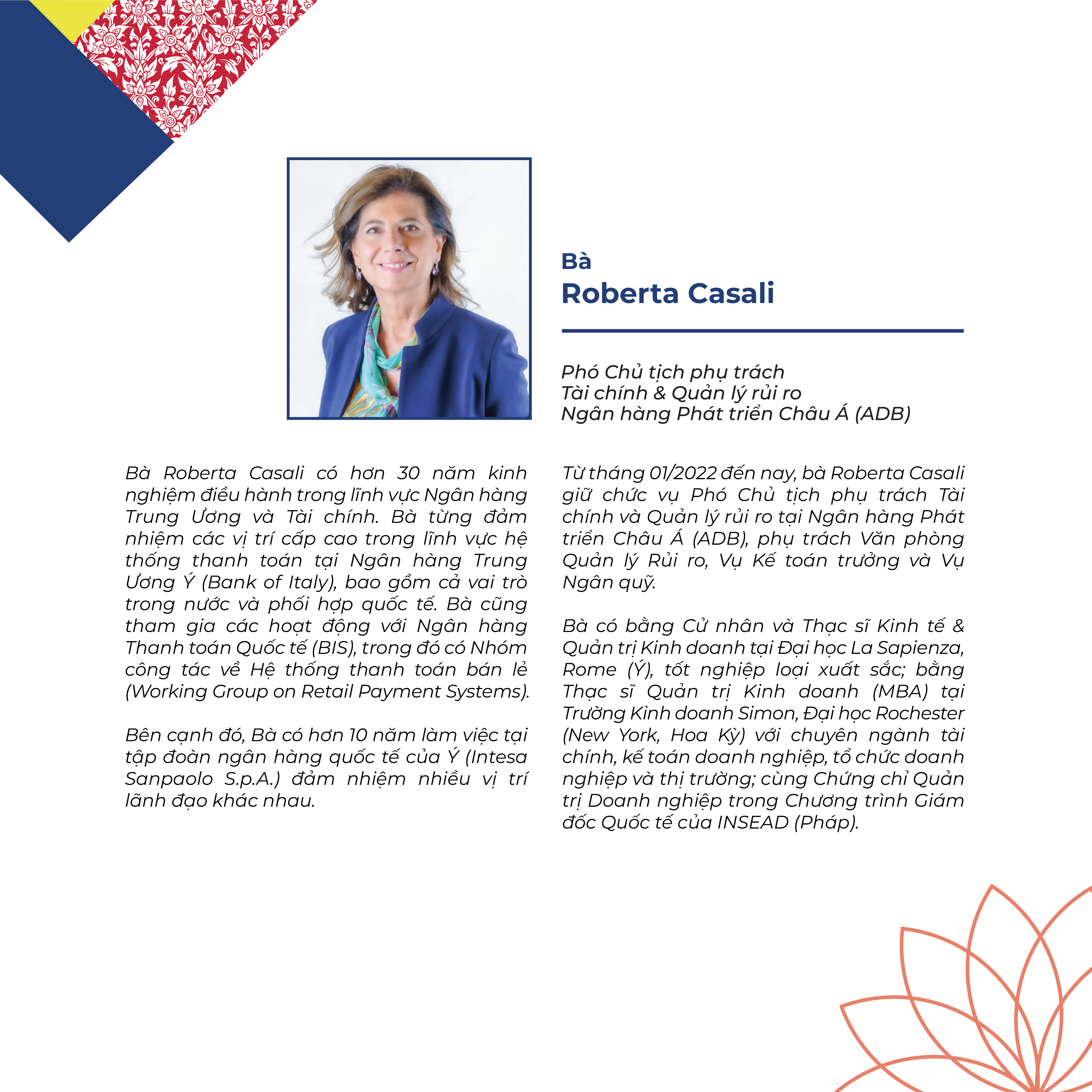 - Bà Roberta Casali – Phó Chủ tịch phụ trách Tài chính & Quản lý rủi ro, Ngân hàng Phát triển Châu Á (ADB).