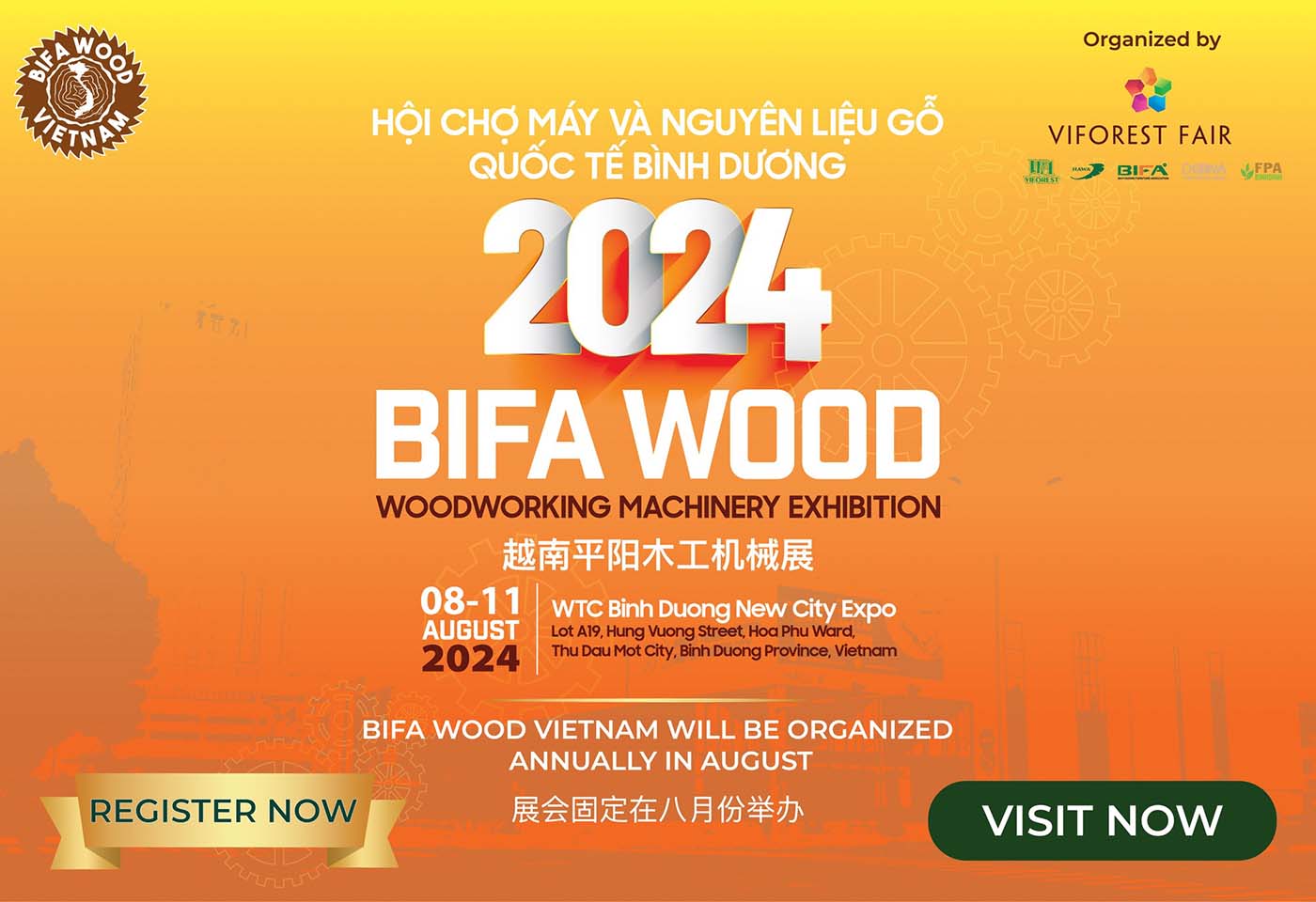 BIFA WOOD VIỆT NAM được biết đến là một trong những sự kiện lớn nhất trong lĩnh vực Triển lãm Máy Chế Biến Gỗ và Nguyên Liệu Gỗ tại Việt Nam, BIFA WOOD quy tụ các doanh nghiệp trong và ngoài nước giới thiệu công nghệ tiên tiến từ nhiều quốc gia trên thế giới. Hội chợ máy và nguyên liệu gỗ quốc tế Bình Dương – BIFA Wood Vietnam diễn ra vào tháng 8 hàng năm.