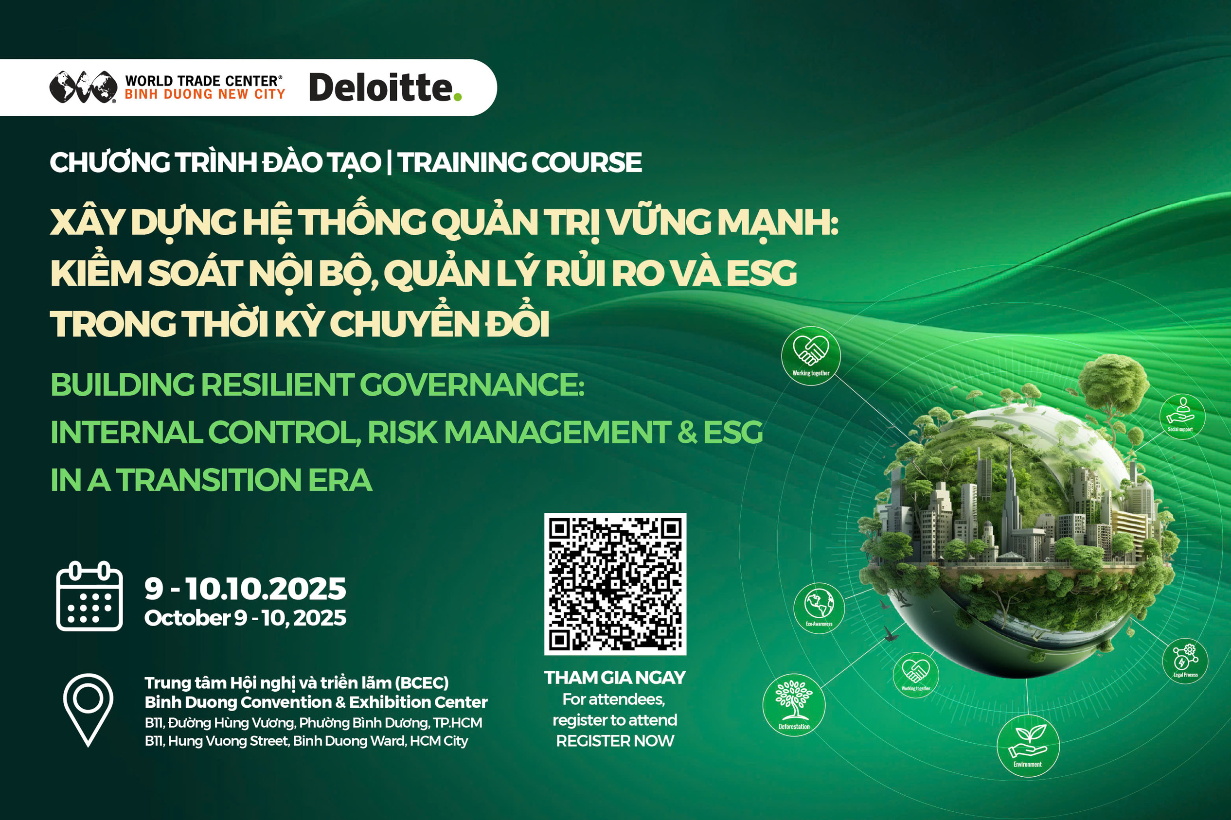 Nhằm hỗ trợ cộng đồng doanh nghiệp củng cố hệ thống quản trị, nâng cao khả năng thích ứng và phát triển bền vững, WTC Binh Duong New City phối hợp cùng Deloitte Việt Nam tổ chức chương trình đào tạo chuyên sâu với chủ đề: Xây dựng hệ thống Quản trị vững mạnh Kiểm soát nội bộ, Quản lý rủi ro, Gian lận và ESG trong thời kỳ chuyển đổi