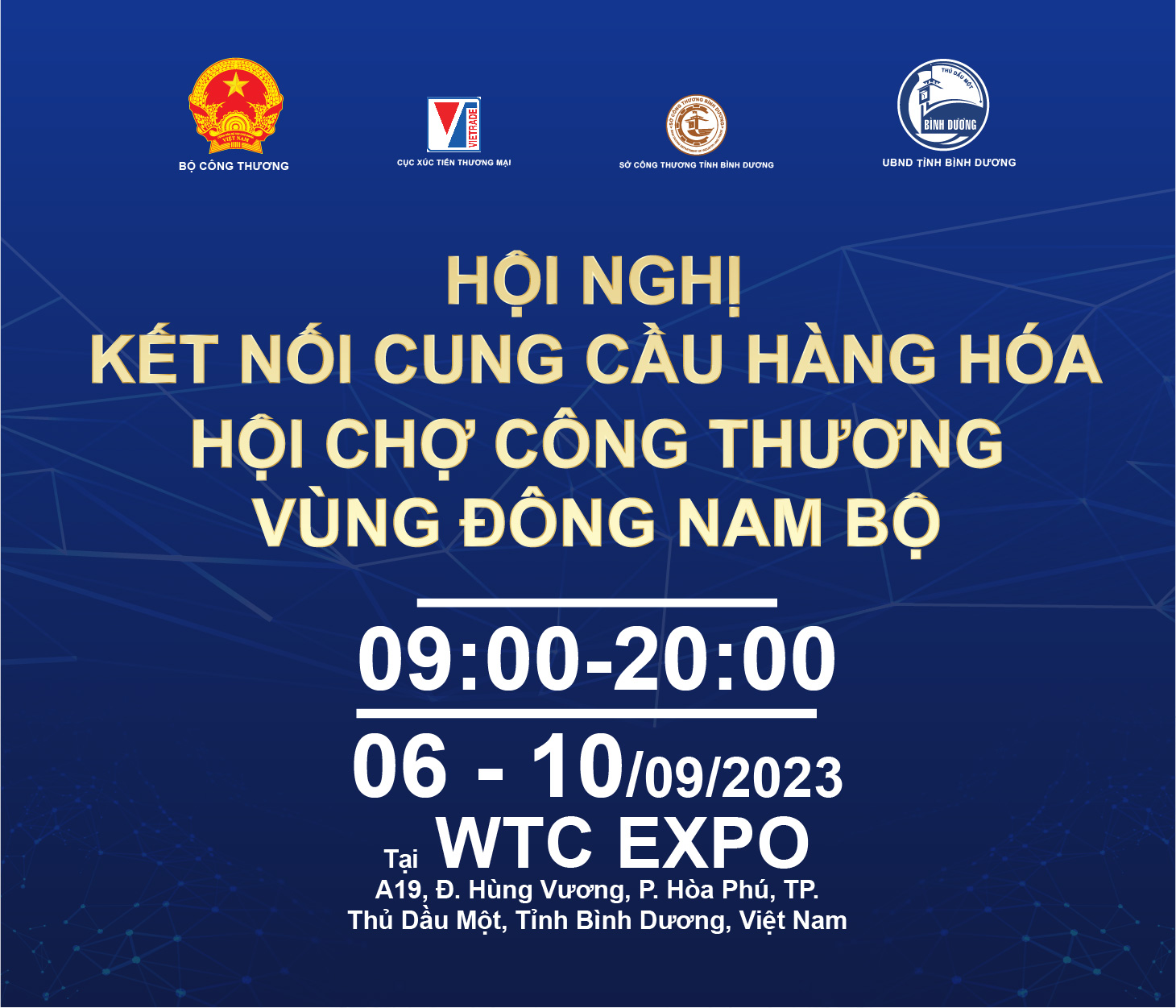 Nhằm thúc đẩy các hoạt động xúc tiến thương mại của các tỉnh, thành phố thuộc khu vực Đông Nam Bộ nói riêng và cả nước nói chung. Hội nghị Kết nối cung – cầu hàng hóa và Hội chợ Công Thương vùng Đông Nam Bộ tại tỉnh Bình Dương sẽ được tổ chức tại: